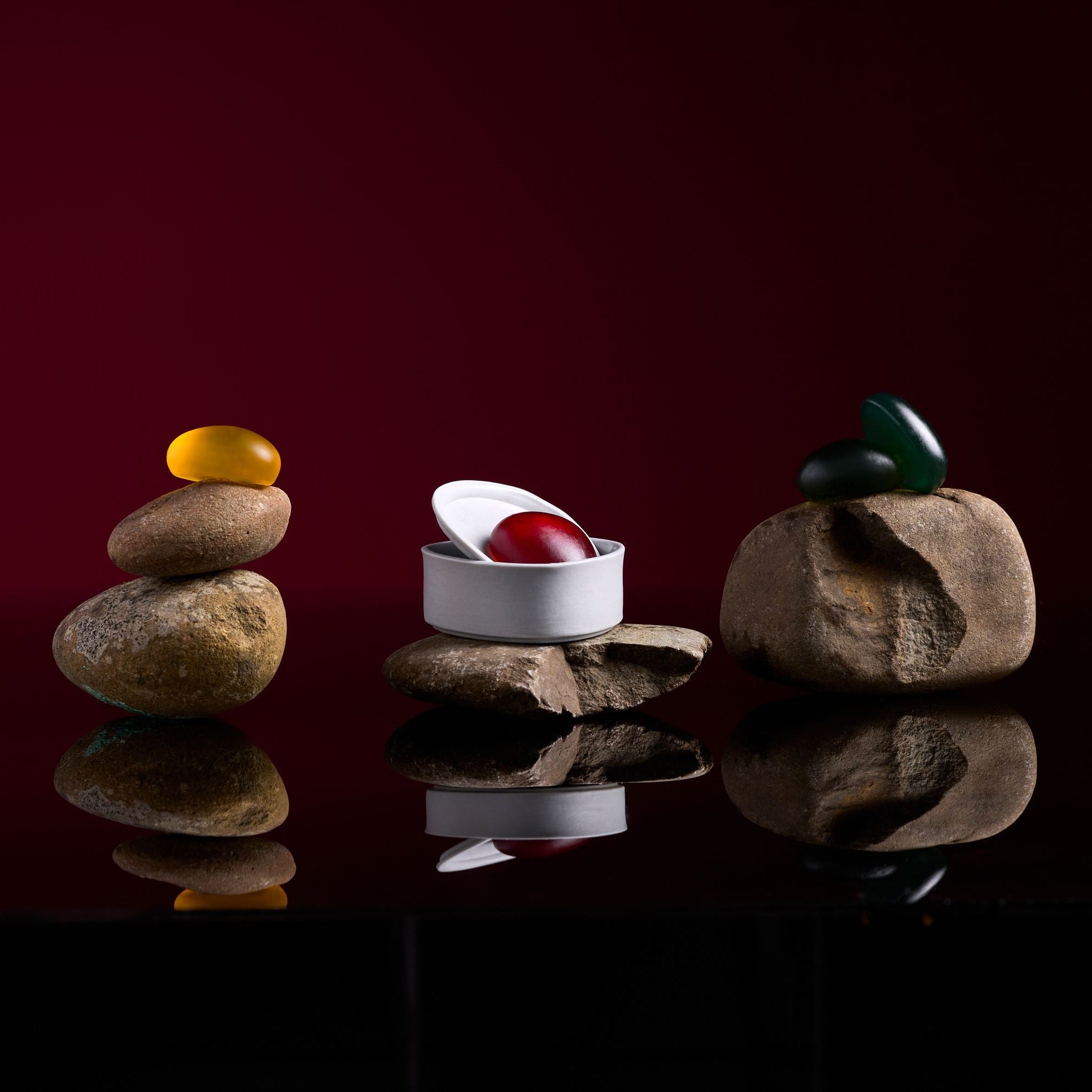 A celebration of connection, art, and luxury. Award-winning AWAKEN Day and GROUND Night Moisturiser Stones. A gift for one or two. Ceramic vessels sold separately.